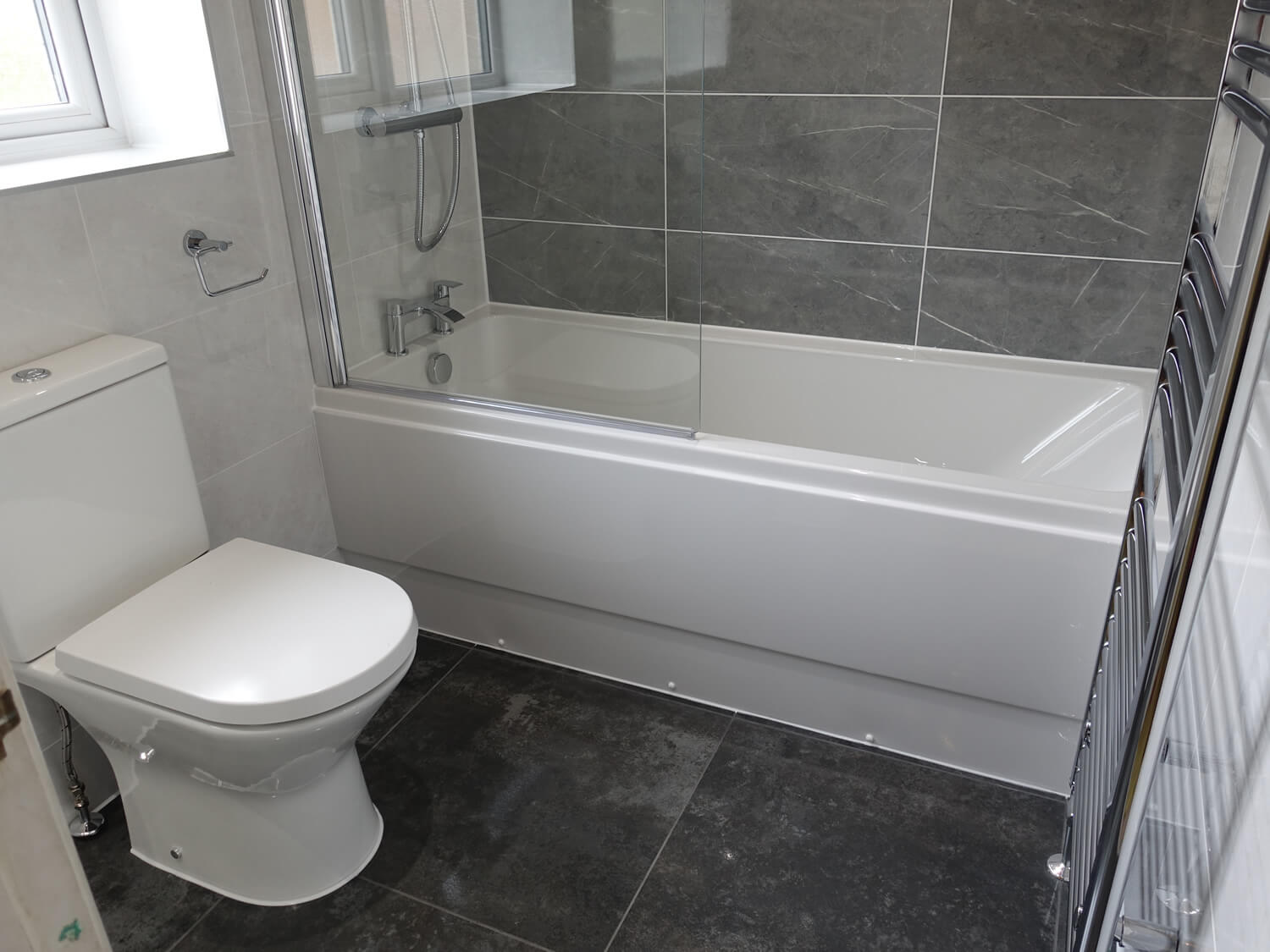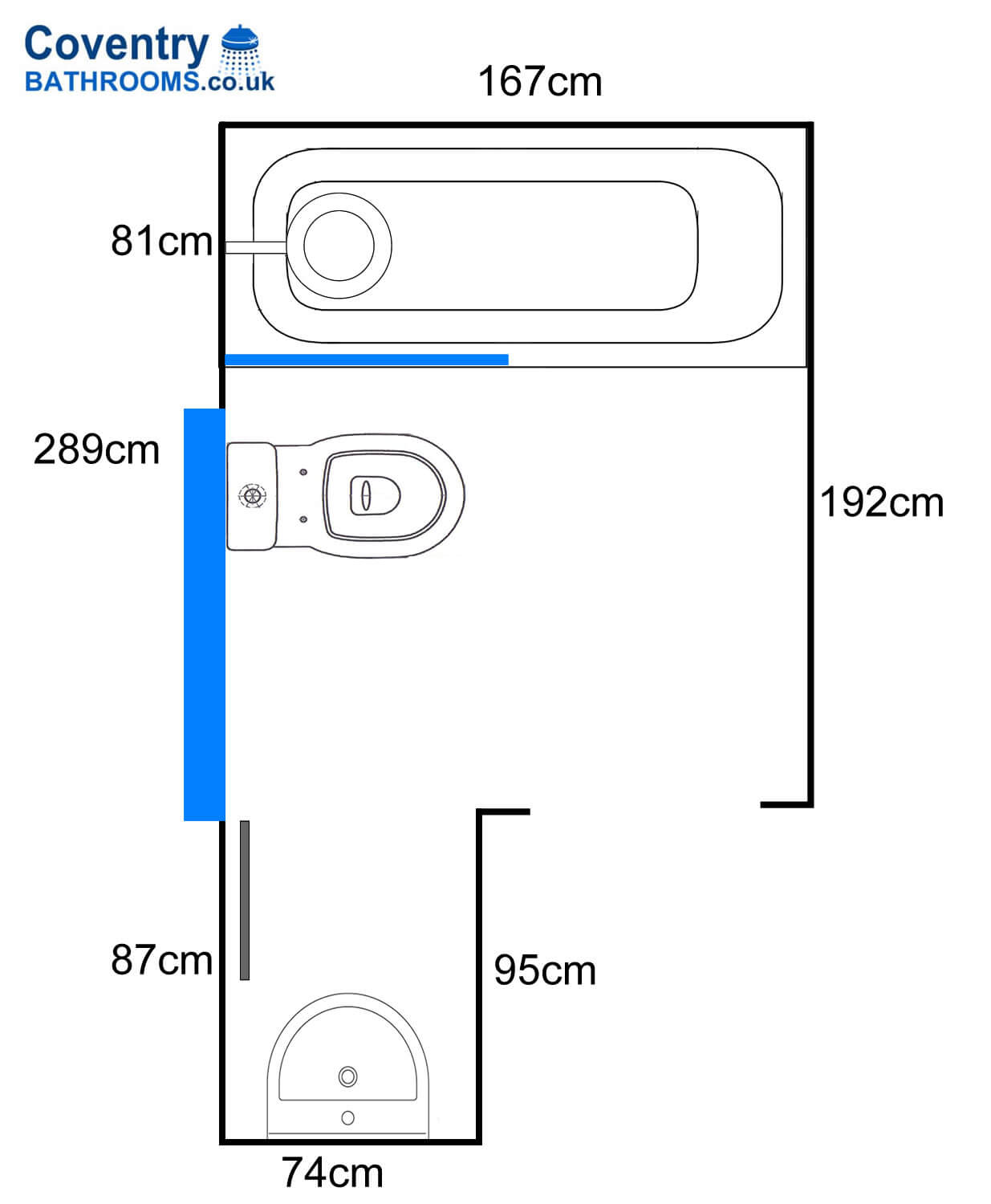 The client requested the we supply and fit the bathroom adhearing to the original bathroom layout with no change. The bathroom size 289cm long by 167cm wide. The bathroom has a standard three piece bathroom suite consisting of a bath, toilet and basin.